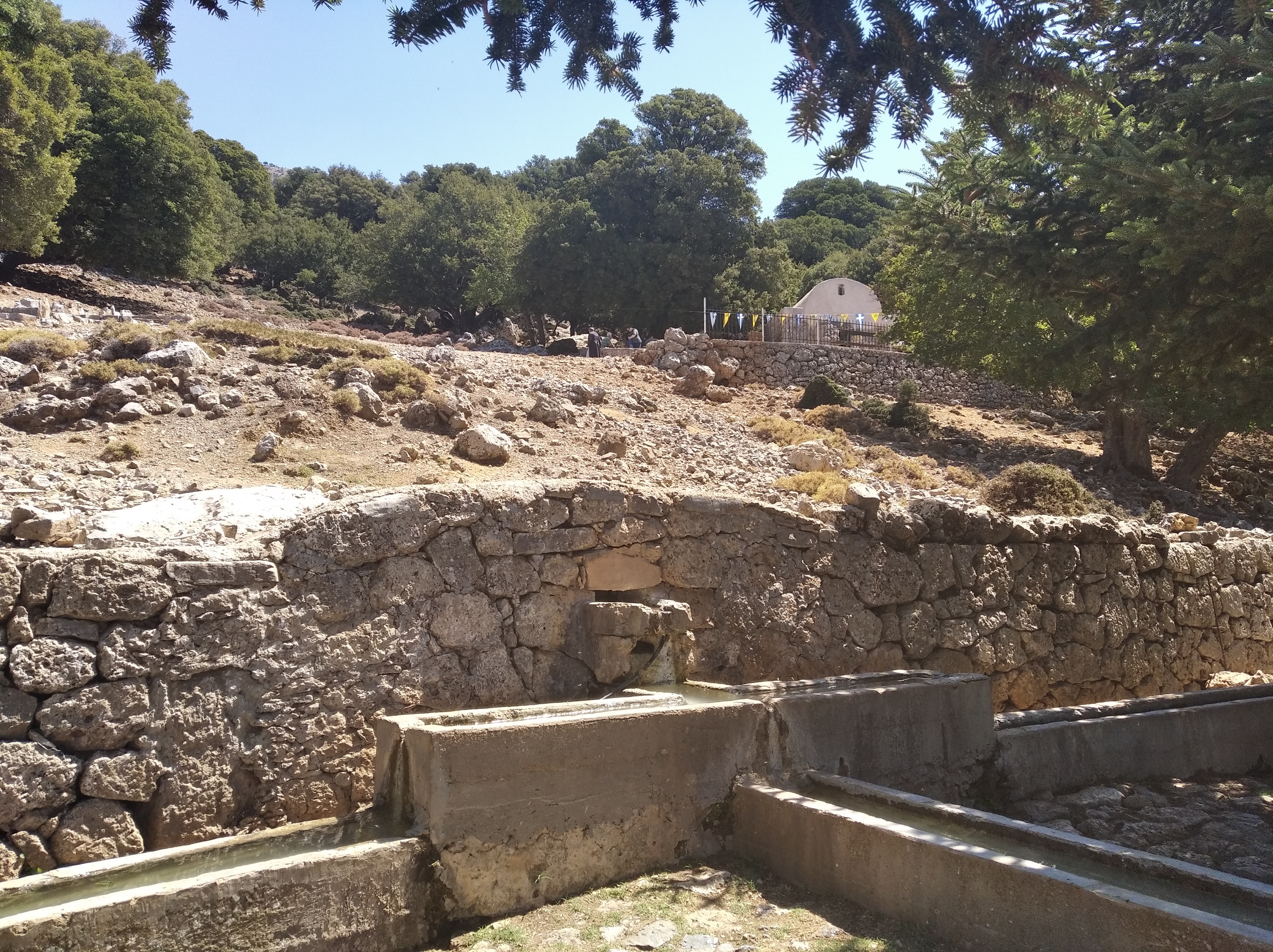 [4]. Παρακάτω, η πηγή νερού στο Παρδί, όπως ήταν πριν από μερικά χρόνια. Το 1909, ο Trevor-Battye φωτογράφισε εδώ το αγόρι πάνω στον γάιδαρο. Στο βάθος διακρίνεται το εκκλησάκι του Αγίου Τίτου.