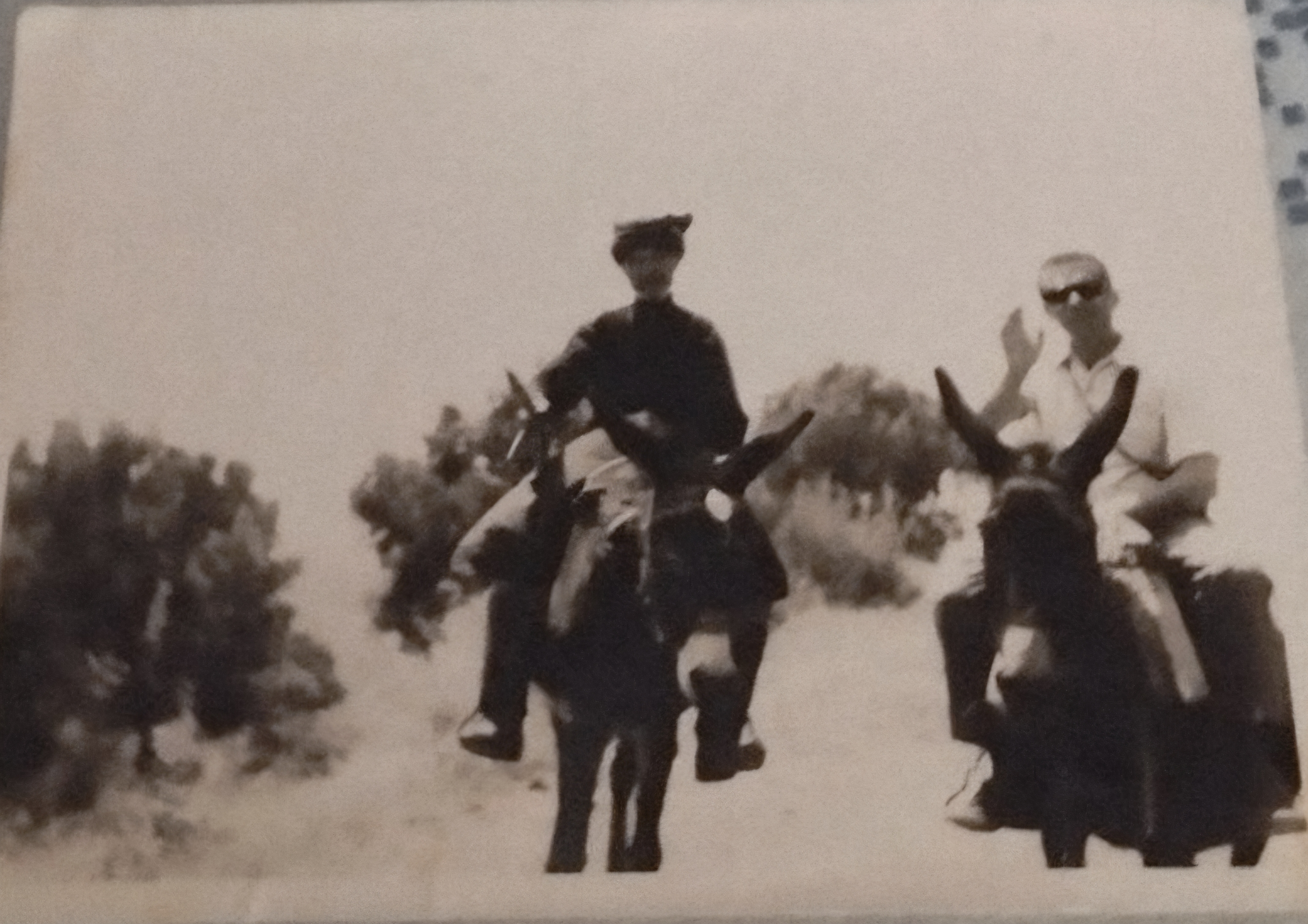 3. Υπέθεσα -διαφορετικά δεν θα μπορούσα να προχωρήσω στις συγκρίσεις- ότι το αγόρι αυτό ήταν κάτοικος Κουρουτών. [σ.σ.: Στο προηγούμενο κείμενό μου είχα γράψει αναφέροντας τα πρόσωπα της φωτογραφίας αυτής: «στο μέσον το αγόρι που συνάντησαν πάνω στον γάιδαρο (πιθανόν κάτοικος Κουρουτών)» για την περίπτωση που ο πατέρας του αγοριού ήταν π.χ. Νιθαυριανός (η απόσταση Νίθαυρης-Κουρούτες είναι 3χλμ.) που είχε προσληφθεί από Κουρουθιανό κτηνοτρόφο, και το αγόρι πήγαινε με το γαϊδούρι φαγητό στον πατέρα του. Οι παλιότεροι Κουρουθιανοί θα θυμούνται τον νεαρό βοσκό με το βαφτιστικό όνομα Βενιζέλος, που αν και ήταν από άλλη περιοχή είχε προσληφθεί λόγω έκτακτων αναγκών και εργαζόταν για ένα διάστημα στο κουρουθιανό αόρι.]