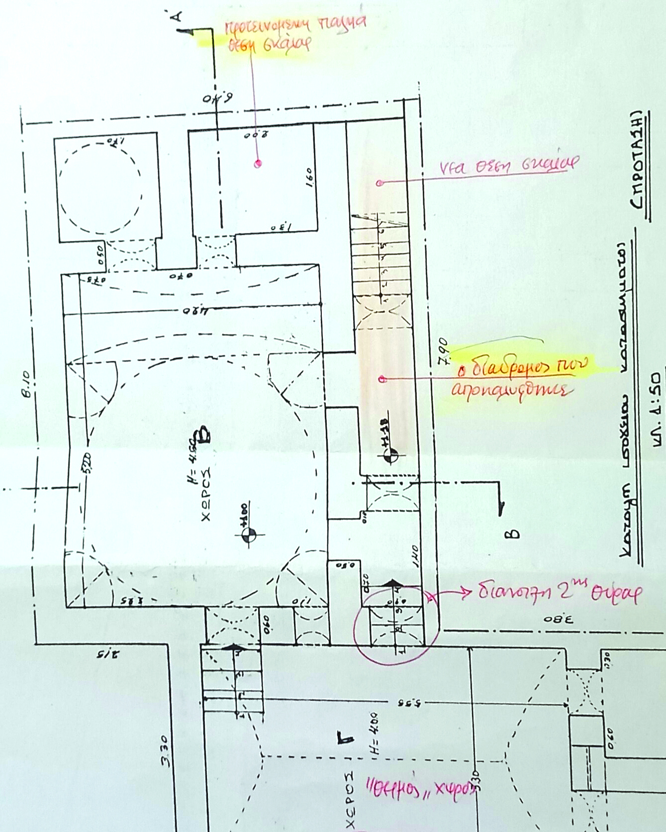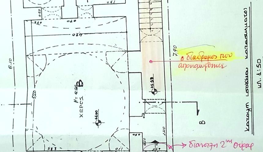 Πρότεινα στην Αρχαιολογία που κάλεσα, να κατασκευάσω σ αυτόν το διάδρομο τη ΣΚΑΛΑ που οδηγεί στην ταράτσα και όχι στη θέση που η υπηρεσία τους ΕΙΧΕ ΕΓΚΡΙΝΕΙ στον προηγούμενο ιδιοκτήτη. (Φώτο).