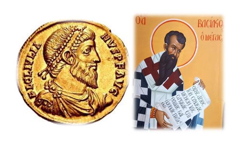 Ο Ιουλιανός ο Παραβάτης («Αποστάτης») (331–363 μ.Χ.) ήταν Ρωμαίος αυτοκράτορας, ανιψιός του Μεγάλου Κωνσταντίνου. Αν και βαπτίστηκε και ανατράφηκε ως χριστιανός, ως ενήλικας στράφηκε στον νεοπλατωνισμό και στον παραδοσιακό ελληνορωμαϊκό πολυθεϊσμό. Ο Μέγας Βασίλειος (330–379 μ.Χ.) από την άλλη ήταν από τους σημαντικότερους Πατέρες της Εκκλησίας, μορφωμένος, με σπουδές στην Αθήνα, σύγχρονος του Ιουλιανού. Παρότι οι δύο άνδρες συνδέθηκαν με κοινή μαθητεία στην Αθήνα, στη συνέχεια ακολούθησαν διαμετρικά αντίθετες πορείες.