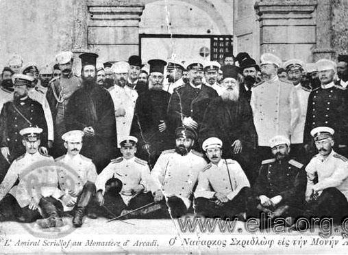 [8] Επιθεώρησις, Εφημερίς Πολιτική κοινωνική εμπορική και των ειδήσεων, εκδίδεται κατά Σάββατον, υπεύθυνος εκδότης Γ. Παππαδόπετρος, Διευθυντής και Συντάκτης Θεμ. Γ. Παπαδάκης, πρώτο φύλλο 31 Δεκ. 1900, 27 Απριλίου 1902, Ρέθυμνον, εφημερίς των ειδήσεων εκδιδομένη δις της εβδομάδος, διευθυντής και εκδότης Στ. Καλαϊτζάκης, πρώτο φύλλο 24 Νοεμβρίου 1898. Ο ορθόδοξος πληθυσμός αντιμετώπιζε τους Ρώσους ως σωτήρες και η υπέρ της ορθοδοξίας πρακτική των Ρώσων επικαλύπτει και την παραμικρή εκδήλωση δυσαρέσκειας του χριστιανικού στοιχείου τουλάχιστον μέχρι το 1905. Χαρακτηριστικές είναι οι αναμνήσεις του Περβολιανού Γιωργάκη «Καπνουτζή» στο Γιάννης Γ. Κωνσταντουδάκης, «Αναμνήσεις του Περβολιανού Γιωργάκη «Καπνουτζή» από τις τελευταίες επαναστάσεις της Κρήτης και τη Μεταπολίτευση», Κρητολογικά Γράμματα, 13, 1997, σ. 251 κ.ε..