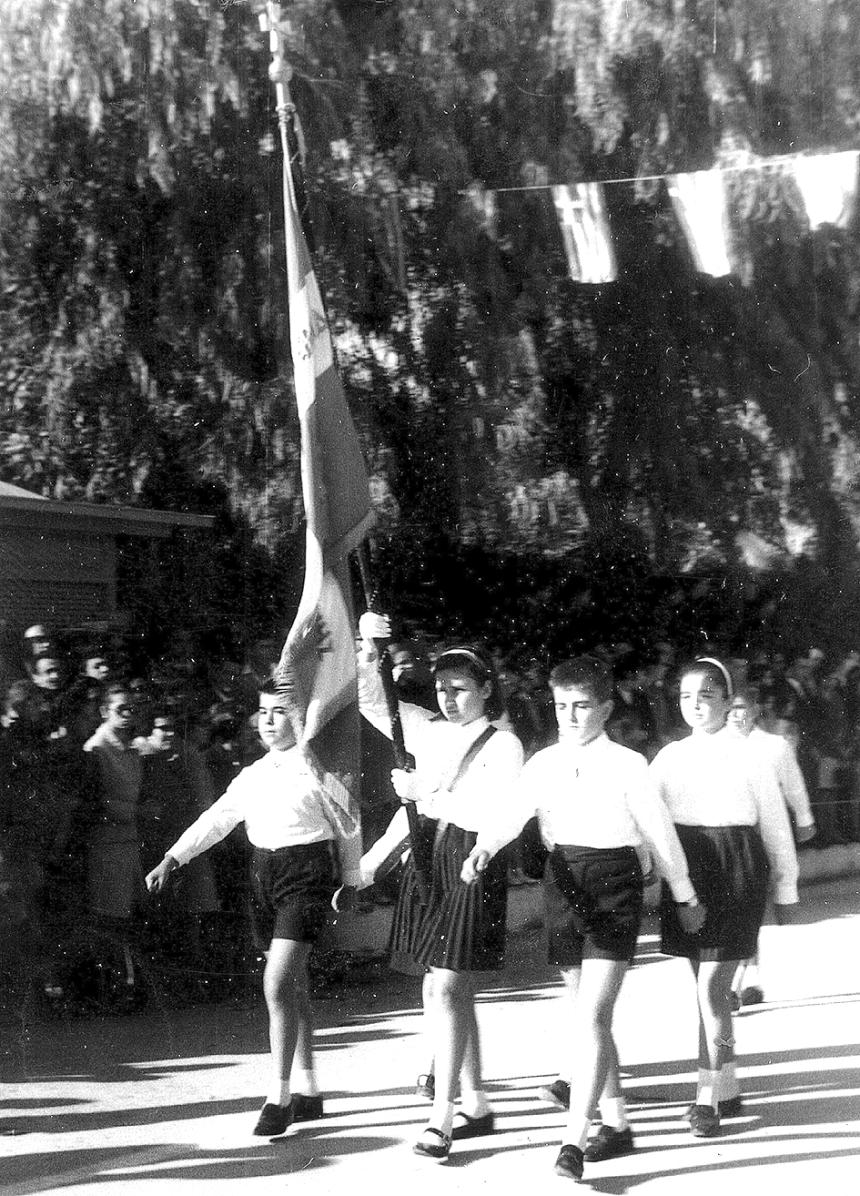 15. Για να «ευλογήσω λίγο και τα γένια μου», που δεν διαθέτω, θα παραθέσω την παράταξη της σημαίας του 2ου Δημοτικού Σχολείου κατά το σχολικό έτος 1969-1970. Σημαιοφόρος του σχολείου ήταν η Αφρούλα Λαγκουβάρδου και παραστάτες ο Μάρκος Κουταλάς και ο υπογραφόμενος.