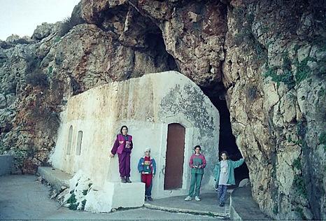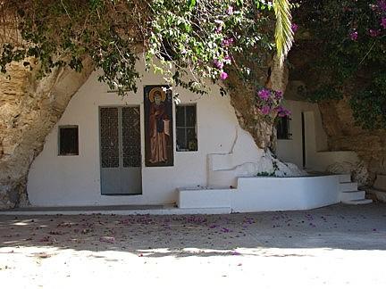 10. Κοντά στην εκκλησία της Ζωοδόχου Πηγής διανοίγονται δύο έγκοιλα, γνωστά στη βιβλιογραφία ως Σπήλαιο Παναγία 1 και Σπήλαιο Παναγία 2. Η οροφή του πρώτου έχει καταπέσει και το ενδιαφέρον του εντοπίζεται στο πλήθος απολιθωμένων οστών νάνων ελεφάντων που περιέχουν τα ιζήματά του. Κοντά στην εκκλησία διανοίγεται και το δεύτερο από τα σπήλαια αυτά, με διαστάσεις 4,00 × 7,00 × 3,00 μέτρα και διακόσμηση μικρών σταλακτιτών και μιας μεγάλης σταλαγμιτικής κολώνας. Είναι πολύ πιθανόν να αποτελεί το κατάλοιπο βραχοκλησιάς αφιερωμένης στον Άγιο Ιωάννη Ερημίτη, από την οποία είχε ονοματοδοτηθεί ολόκληρο το ακρωτήριο στη Βενετοκρατία. Ενδιαφέρον παρουσιάζει η τεχνητή διαμόρφωση σε παλιότερες εποχές μιας παραπλήσιας βραχοσκεπής, έτσι ώστε να μπορεί να αποσύρεται εκεί και να διαχειμάζει λέμβος.