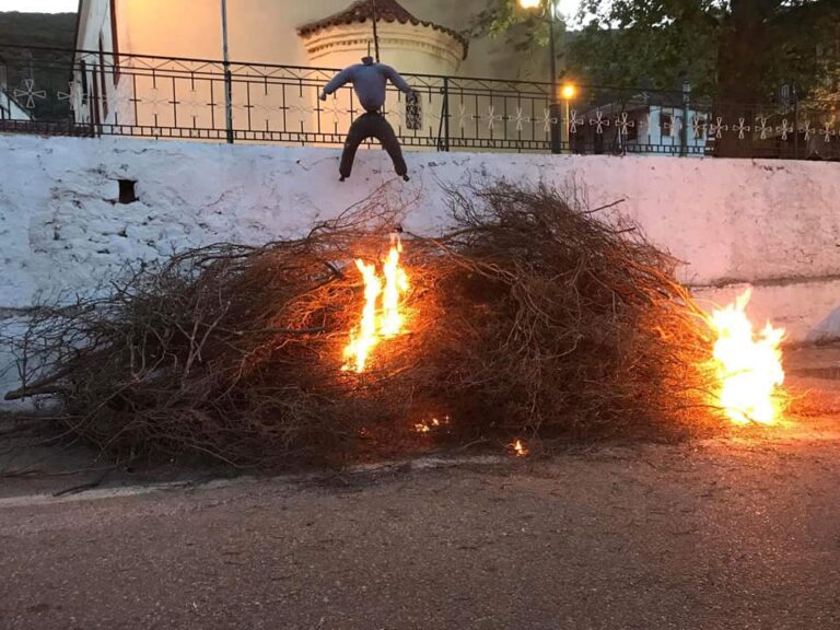 Το βράδυ της Ανάστασης, με το Χριστός Ανέστη, τα κοπέλια δίνουν φωθιά στον μεγάλο σωρό με τα ξύλα και μαζί καίγεται και ο Ιούδας με τα απαραίτητα μπαλοταρίσματα και ενώ ακόμα και εχθροί εκείνη την ημέρα δίνουν το φιλί της Αγάπης στο προαύλιο της εκκλησίας, ενώ η καμπάνα χτυπά χαρμόσυνα. Βέβαια τα παιδιά τότε, ήταν υποχρεωμένα ως την επ’ αύριο, να έχουν καθαρίσει καλά καλά το χώρο με τις στάχτες, για να είναι καθαρός για το γλέντι που θα ακολουθήσει.