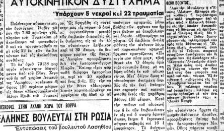 Θύμισες θλιβερές, πριν από εβδομήντα χρόνια «ΠΑΤΡΙΣ ΚΥΡΙΑΚΗ 21 ΟΚΤΩΒΡΙΟΥ 1956 ΤΟ ΧΘΕΣΙΝΟΝ ΠΟΛΥΝΕΚΡΟΝ ΑΥΤΟΚΙΝΗΤΙΚΟΝ ΔΥΣΤΥΧΗΜΑ Υπάρχουν 5 νεκροί και 22 τραυματίαι ... 20.12.2025 10:30