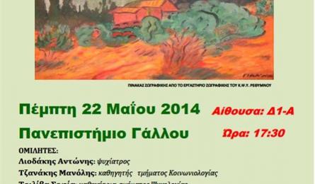 Ενημερωτική εκδήλωση με θέμα: “Ψυχική υγεία: χθες, σήμερα, αύριο” Στο πλαίσιο των δραστηριοτήτων του το Κέντρο Ψυχικής Υγείας Ρεθύμνου(Κ.Ψ.Υ. Ρ.),και οι φοιτητές πρακτικής άσκησης του Πανεπιστημίου Κρήτης ,... 16.05.2014 16:10