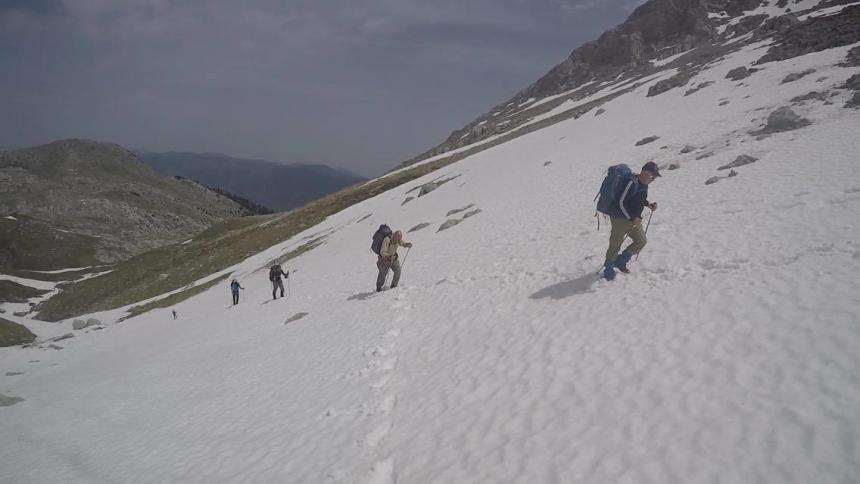 Η ανάβαση ξεκίνησε από τη θέση Μνήματα, έφτασαν στη τοποθεσία Βαθιά Λάκκα και απο εκει στη κορυφή Πυραμίδα (2,508μ.) Στη συνέχεια κατέβηκαν από την κορυφή στη θέση “Λάκκα Kαρβούνη” όπου βρίσκεται το καταφύγιο του Πεζοπορικού Ομιλου Αθηνών οπου και διανυκτέρευσαν. Τη 2η μέρα έκαναν κατάβαση από τη χαράδρα της Ρεκκάς στο χωριό Βίνιανη όπου ήταν και ο τελικός προορισμός τους.