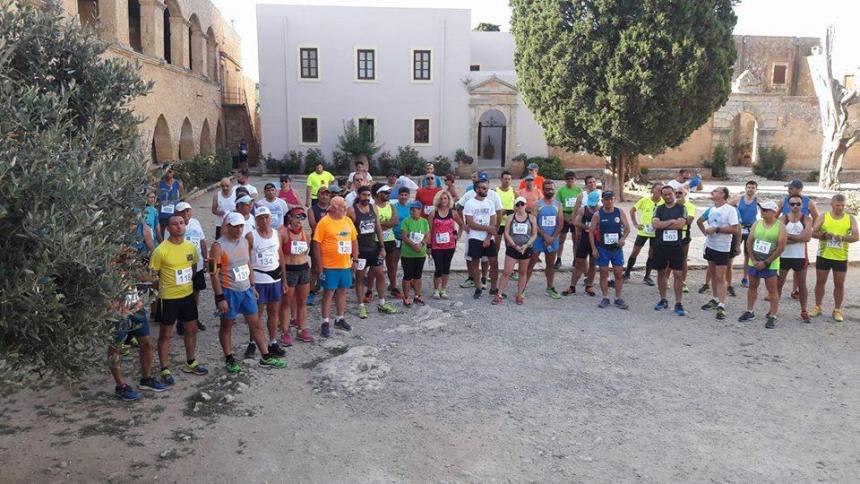 Παρά τις πολύ δύσκολες καιρικές συνθήκες ( 36 βαθμοί θερμοκρασία και άπνοια ) 68 ηρωικοί δρομείς , άνδρες και γυναίκες, παρατάχθηκαν στη γραμμή της εκκίνησης μπροστά από την είσοδο της Ιερής Μονής Αρκαδίου στις 18.30 .