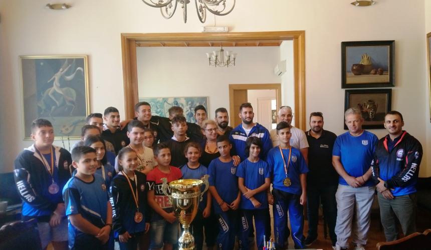 Τη Ρεθεμνιώτικη αποστολή των αθλητών και προπονητών, που συμμετείχαν στο πρόσφατο Βαλκανικό Πρωτάθλημα και το Παγκόσμιο Κύπελλο Ζίου - Ζίτσου, που πραγματοποιήθηκαν 13 – 15 Σεπτεμβρίου 2019 στο Βουκουρέστι, υποδέχτηκε σήμερα στην έδρα της Περιφερειακής Ενότητας Ρεθύμνης, η Αντιπεριφερειάρχης Ρεθύμνης, κα Μαρία Λιονή.