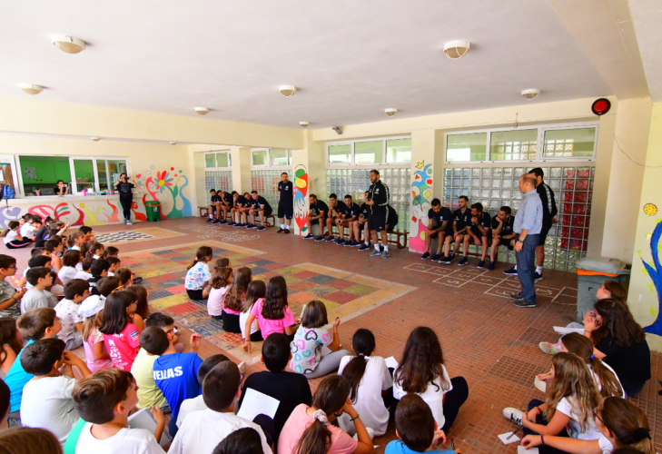 Οι Έλληνες παίκτες επισκέφτηκαν χθες το 14ο και το 10ο δημοτικό σχολείο Ρεθύμνου και αποθεώθηκαν από τους λιλιπούτειους φιλάθλους! Εκατοντάδες παιδιά άκουσαν τους έλληνες παίκτες να τους δίνουν συμβουλές για τις αξίες του αθλητισμού, ενώ περιζήτητος για αυτόγραφα ήταν ο Κώστας Κατσουράνης, ο οποίος δε χάλασε το χατίρι σε κανένα παιδί!