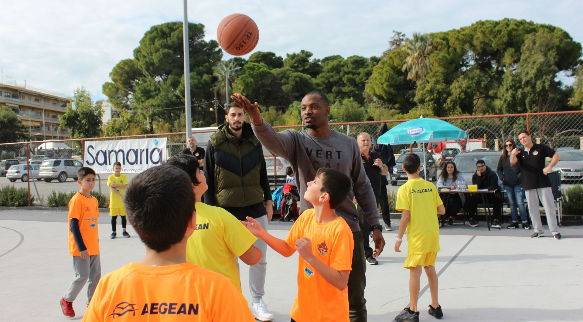 Παράλληλα στα γήπεδα βρέθηκαν και οι επαγγελματίες καλαθοσφαιριστές της ομάδας μας Μιχάλης Καμπερίδης και Ντέιβιντ Χότον, οι οποίοι συνομίλησαν με τους μικρούς αθλητές, τους έδωσαν μπασκετικές συμβουλές και φωτογραφήθηκαν μαζί τους.