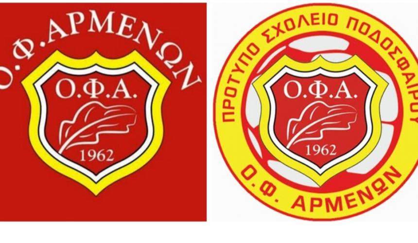 «Το Διοικητικό Συμβούλιο, οι προπονητές και η ομάδα του Ο.Φ.Α εύχονται στα παιδιά του Προτύπου Σχολείου Ποδοσφαίρου Αρμένων, Μαρκίδη Αντώνη και Χαριτάκη Αντώνη, χρόνια πολλά για την ονομαστική τους εορτή, υγεία, χαμόγελα και κάθε επιτυχία στη ζωή τους, στο χώρο του αθλητισμού αλλά και εκτός αυτού».