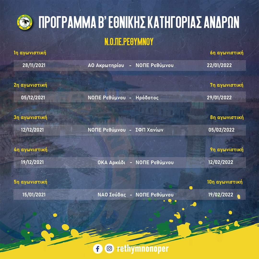 Το πρόγραμμα του πρωταθλήματος Ανδρών