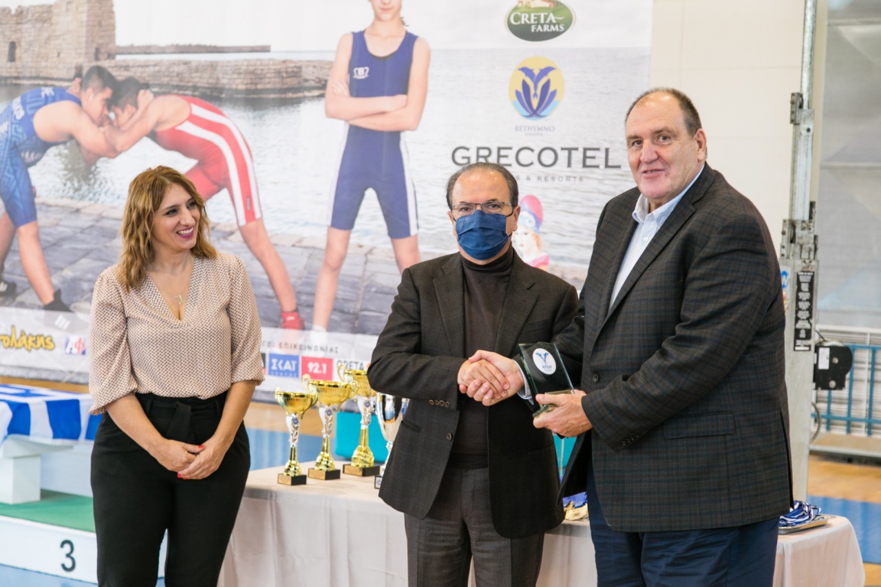 Ο Αθλητικός Παλαιστικός Όμιλος Ρεθύμνου τίμησε τον Περιφερειάρχη Κρήτης κ. Σταύρο Αρνατουτάκη και την Αντιπεριφερειάρχη Ρεθύμνου κ.Μαρία Λιονή για την συμβολή τους στην ανάπτυξη της πάλης στην Κρήτη, τον πρόεδρο της Μότορ Όιλ (Hellas) κ. Βαρδή Βαρδινογιάννη ως μεγάλο χορηγό της ομάδας και τους χορηγούς τον πρόεδρο της Grecotel κ.Νίκο Δασκαλαντωνάκη και τον πρόεδρο της Creta Farms κο Δημήτρη Βιντζηλαίο.