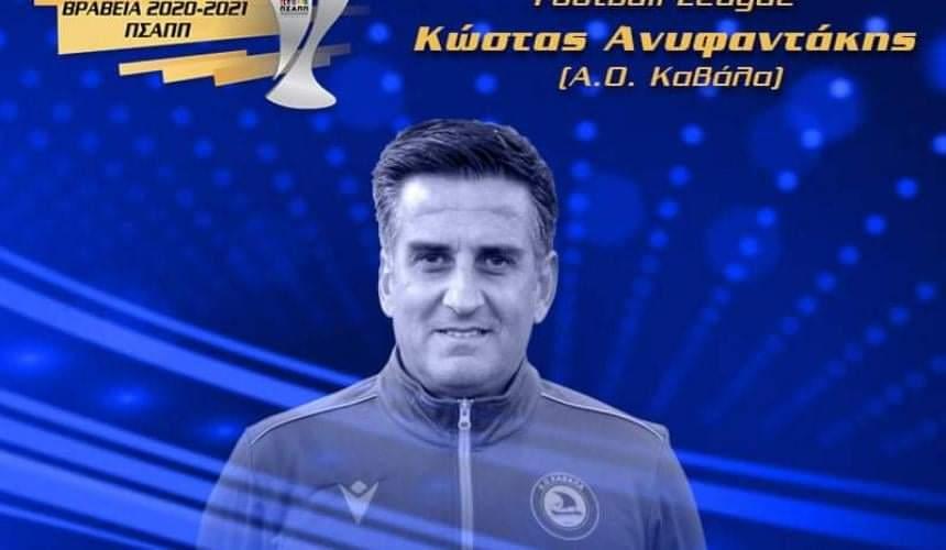 «Ο Πρόεδρος και το Δ.Σ. της Δόξας Πλατανέ συγχαίρουν θερμά τον Ρεθυμνιώτη προπονητή ποδοσφαίρου, Κώστα Ανυφαντάκη, για τη σπουδαία διάκριση του. Ο Πανελλήνιος Σύνδεσμος Αμειβομένων Ποδοσφαιριστών-στριών τον βράβευσε ως τον κορυφαίο προπονητή της Football League 2020-21, όπου κατάφερε να ξεχωρίσει ως τεχνικός της ΠΑΕ Καβάλας.
