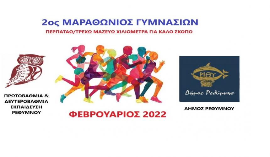 Την Κυριακή 6/2/2022 θα πραγματοποιηθεί η τελική εκδήλωση του 2ου Μαραθώνιου Γυμνασίων που διοργανώνει ο Δήμος Ρεθύμνου σε συνεργασία με την Πρωτοβάθμια και Δευτεροβάθμια Εκπαίδευση. Όλες οι ομάδες που συμμετείχαν για 7 συνεχόμενες εβδομάδες στον Εικονικό Μαραθώνιο, θα πρέπει να περπατήσουν/τρέξουν ομαδικά ένα «πραγματικό Μαραθώνιο» (που σημαίνει 10 χιλιόμετρα ο κάθε μαθητής) στο παραλιακό μέτωπο, από το Λύκειο Ελληνίδων μέχρι το τέλος της παραλιακής.