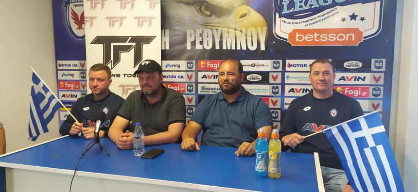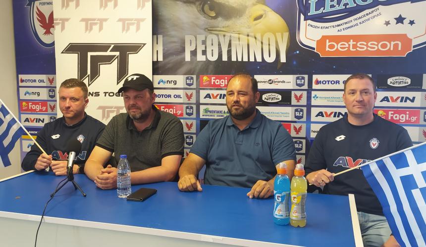 “Πρόκειται να καλέσουμε κάποιους παίκτες από το Ρέθυμνο και την Κρήτη. Υπάρχουν καλοί ποδοσφαιριστές που κατάγονται από το Ρέθυμνο και την Κρήτη και παίζουν κάπου αλλού. Πρώτα πα’ όλα όμως, θέλουμε να δούμε το υλικό που υπάρχει εδώ και να δώσουμε τις ευκαιρίες και την ελπίδα σε νέους παίκτες για να τους έχουμε μαζί μας. Θα το κάνουμε πολύ σύντομα. Για την ακριβή ημερομηνία είναι κάτι που θα το συνεννοηθούμε με τον κ. Καραβιώτη.”