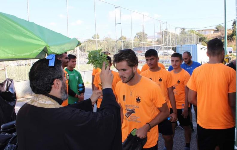 Ο πατήρ Παντελεήμων τέλεσε τον αγιασμό ευχόμενος για μία σεζόν γεμάτη υγεία και πολλές νίκες. Το «παρών» έδωσε το Δ.Σ. της ομάδας μας, ο πρόεδρος, Αντώνης Βαρούχας και οι Μαρίνος Παπαδάκης, Γιώργος Πάγκος, Βαγγέλης Γιατζόγλου, Νίκος Τσιμπούκας, σύσσωμο το τεχνικό επιτελείο, οι παίκτες και οι εργαζόμενοι της ομάδας».