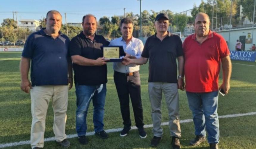 Την τιμητική πλακέτα παρέλαβε ο ίδιος ο πρόεδρός, κ. Μιχάλης Νικολιδάκης από τον πρόεδρο της Ένωσης Ρεθύμνου, κ. Τίτο Χνάρη.