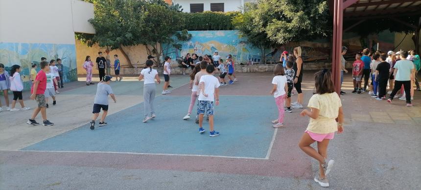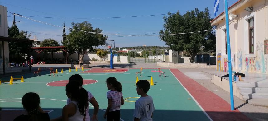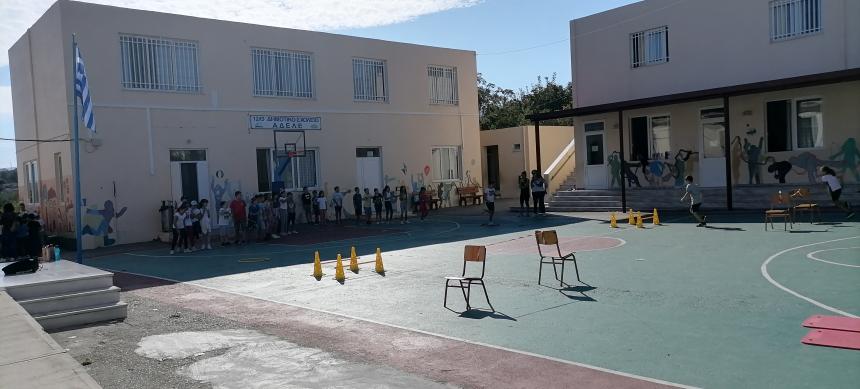 Με την προτροπή των δασκάλων τους, άφησαν τις τσάντες τους στις αίθουσες και βγήκαν στο προαύλιο προκειμένου να επιδοθούν σε διάφορες αθλητικές δραστηριότητες.