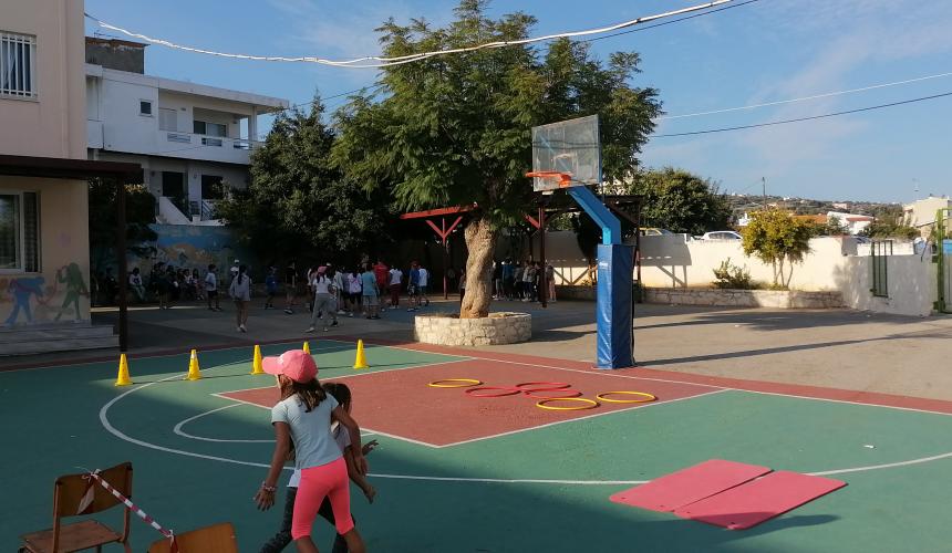 Ο περίβολος του σχολείου έσφιζε από χαμόγελα, και ζωή, από τα παιδιά που έτρεχαν χαρούμενα πάνω κάτω, για να αγωνιστούν με γνώμονα την ευγενή άμιλλα.