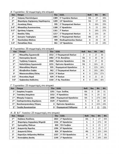2η | Καρούζου Ανδρονίκη-Μελίνα | 1237 | 3ο ΓΕΛ Ηρακλείου | 4 | 0 | 27 | 30 |