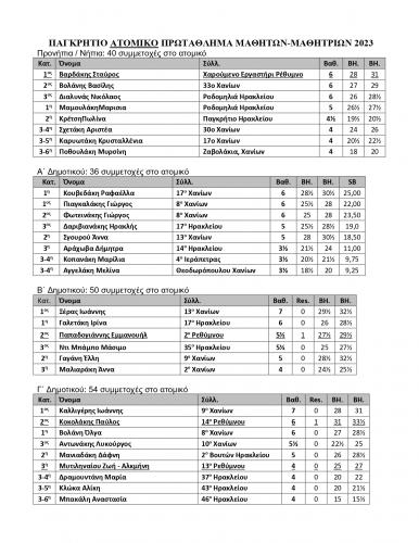 ΠΑΓΚΡΗΤΙΟ ΑΤΟΜΙΚΟ ΠΡΩΤΑΘΛΗΜΑ ΜΑΘΗΤΩΝ-ΜΑΘΗΤΡΙΩΝ 2023