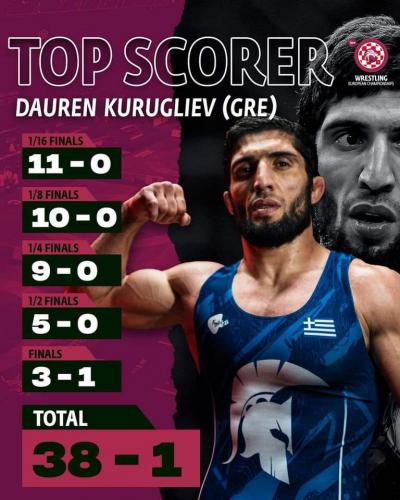 με το Σαν Μαρίνο, έκανε το γύρο του θριάμβου με την Ελληνική Σημαία να κυματίζει. Σε συνέντευξη που παραχώρησε κατά την άφιξή του στο Ελευθέριος Βενιζέλος ο Dauren δήλωσε πως στόχος του είναι οι Ολυμπιακοί Αγώνες στο Παρίσι το 2024. Στο αεροδρόμιο Ελευθέριος Βενιζέλος τον υποδέχτηκε η αναπληρώτρια γραμματέας της Ελληνικής Ομοσπονδίας Πάλης και πρόεδρος του Αθλητικού Παλαιστικού Ομίλου Ρεθύμνου κα Αντωνία Παπαδάκη. Η κα Παπαδάκη ευχαρίστησε το Dauren για την επιτυχία του , τον καλωσόρισε και δήλωσε πως με την παρουσία του ο αθλητής Dauren Kurukliev θα συμβάλει στην ανάπτυξη της Πάλης στη χώρα μας. Ο Dauren ξεκίνησε ήδη να μαθαίνει ελληνικά και αυτό που μας είπε είναι "Ευχαριστώ Ελλάδα "