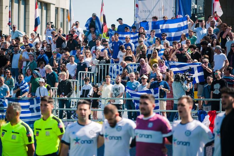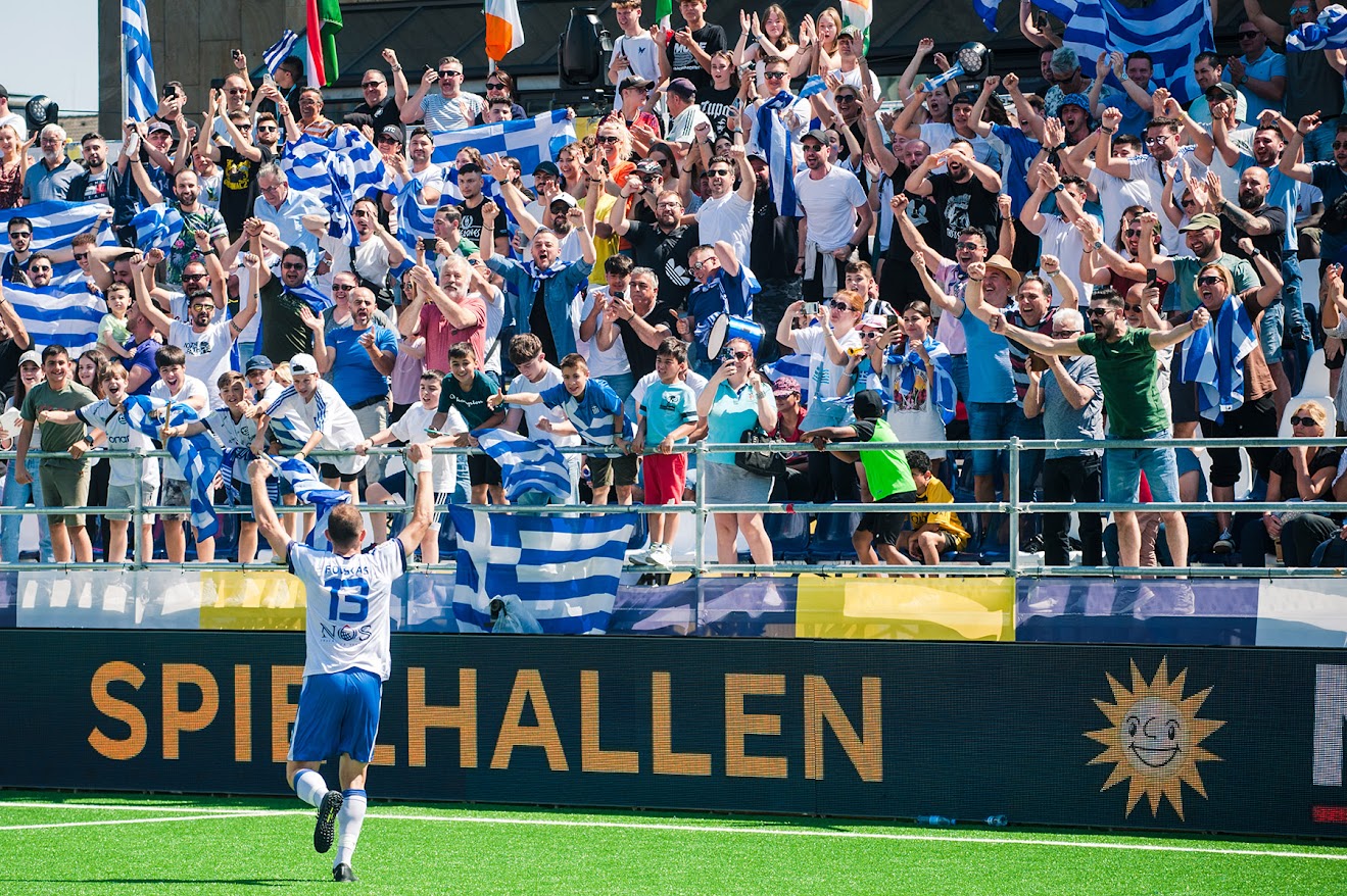 H Ελληνική ομάδα mini ποδοσφαίρου κέρδισε και την Αίγυπτο με σκορ 2-0 στο Μουντιάλ mini ποδοσφαίρου SOCCA World Cup 2023 που διεξάγεται στο Έσσεν της Γερμανίας και αντιμετωπίζει το απόγευμα του Σαββάτου το Μεξικό για την πρόκριση στα ημιτελικά (19:45/ Cosmote 9 HD). Οι Έλληνες φίλαθλοι ήταν για άλλη μία φορά συγκινητικοί και έκαναν του παίκτες να νιώθουν ότι παίζουν στην έδρα τους. Η ομάδα του Γιώργου Μπαστάκη έπαιξε έξυπνα και έδειξε ότι είχε διαβάσει αποτελεσματικά την Αίγυπτο και έκλεισε τους διαδρόμους, παίζοντας παράλληλα στην αντεπίθεση, για να φτάσει να επιβάλλει πλήρως το παιχνίδι της στο 2ο μέρος και να πανηγυρίσει μία επική πρόκριση μέσα σε αποθέωση από του συγκινητικούς Έλληνες της Γερμανίας!