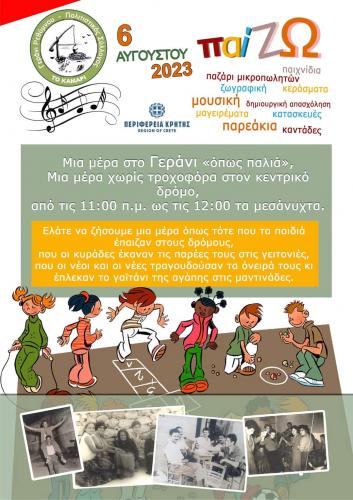 Ένα πλούσιο διήμερο με αθλητικές και πολιτιστικές δραστηριότητες παρουσιάστηκε το προηγούμενο Σαββατοκύριακο,5 και 6 Αυγούστου 2023 στο Γεράνι Ρεθύμνου .Εκδηλώσεις που προσέλκυσαν πλήθος κόσμου, όχι μόνο απο το Ρέθυμνο αλλά και εκτός των τοιχων.Έτσι,το Σάββατο 5 Αυγούστου, διοργανώθηκε ο 1ος Φυσιολατρικός δρόμος GeRUNNI RACE 2023,με τη συμμετοχή 250 περίπου δρομέων όλων των κλάσεων,που απόλαυσαν το τοπίο και τις φυσικές ομορφιές του Γερανίου σε δύο ιδιαίτερες διαδρομές,των 5χμ και 10χμ αντίστοιχα.Την Κυριακή 6 Αυγούστου,τη σκυτάλη πήραν οι 80 λιλιπούτειοι δρομείς,που διένυσαν την απόσταση των 2χμ ,και έδωσαν τον καλύτερο τους εαυτό, προσφέροντας ένα ξεχωριστό θέαμα στο πολυπληθές κοινό.Την ίδια ημέρα, έλαβε χώρα για ακόμα μια φορά η δράση "ΠΑΙΖΩ",με ποικίλα πολιτιστικά και καλλιτεχνικά δρώμενα, όπως μουσική, καντάδες, δημιουργική απασχόληση, παιχνίδια, παζάρι κτλ με την ενεργή συμμετοχή μικρών και μεγάλων!Η αρτιότητα της οργάνωσης και προετοιμασίας των παραπάνω εκδηλώσεων, όπως η παραδοσιακή φιλοξενία των επισκεπτών -δρομεων του GeRUNNI RACE 2023, ήταν αποτέλεσμα της συνέργειας και της άψογης συνεργασίας των τοπικών φορέων του Γερανίου:Η τοπική Κοινότητα Γερανίου,ο Πολιτιστικός σύλλογος Γερανίου "Το Καμάρι",οι ποδοσφαιρικές ομάδες του χωριού,Ποσειδώνας και Γεράκια,οι τοπικές επιχειρήσεις-χορηγοι που στήριξαν οικονομικά το μεγάλο αυτό εγχείρημα,οι σύλλογοι γονέων και κηδεμόνων του Δημοτικού σχολείου και νηπιαγωγείου Γερανίου,αλλά και οι δεκάδες εθελοντές που έδωσαν τον καλύτερο τους εαυτό και σήκωσαν πρακτικά όλο το βάρος της διοργάνωσης.Ολοι οι εθελοντές, απέδειξαν στην πράξη,πώς η συνεργασία σε τοπικό επίπεδο, απ'όλους ανεξαιρέτως τους φορείς, αποδίδει στον τόπο μας πολλαπλά οφέλη, προβάλλοντας τα συγκριτικά πλεονεκτήματα του , δίνοντας έμφαση στην ιστορία,στον πολιτισμό,στον αθλητισμό,στον εθελοντισμό,στον ίδιο τον άνθρωπο!Το παράδειγμα του Γερανίου, αποτελεί πυξίδα και βάση για περαιτέρω διοργανώσεις, όπου με τη συμμετοχή και των υπολοίπων Φορέων, Περιφέρεια Κρήτης -Αντιπεριφερεια Ρεθύμνης, Δήμος Ρεθύμνης -Τμημα Αθλητισμού, κτλ , επιτευχθει με απόλυτη επιτυχία το επιθυμητό αποτέλεσμα, πάντα σε συνεργασία και συνεννόηση.Στο Γεράνι λοιπόν... γίνεται δουλειά,κι αυτό φαίνεται!