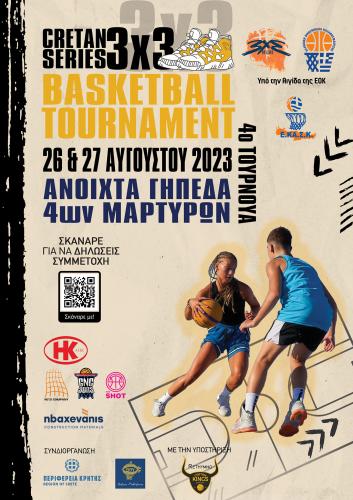 Το 3Χ3 τουρνουά μπάσκετ “Cretan Series” πραγματοποιείται στις 26 και 27 Αυγούστου στο Ρέθυμνο με τη στήριξη της Περιφέρειας Κρήτης
