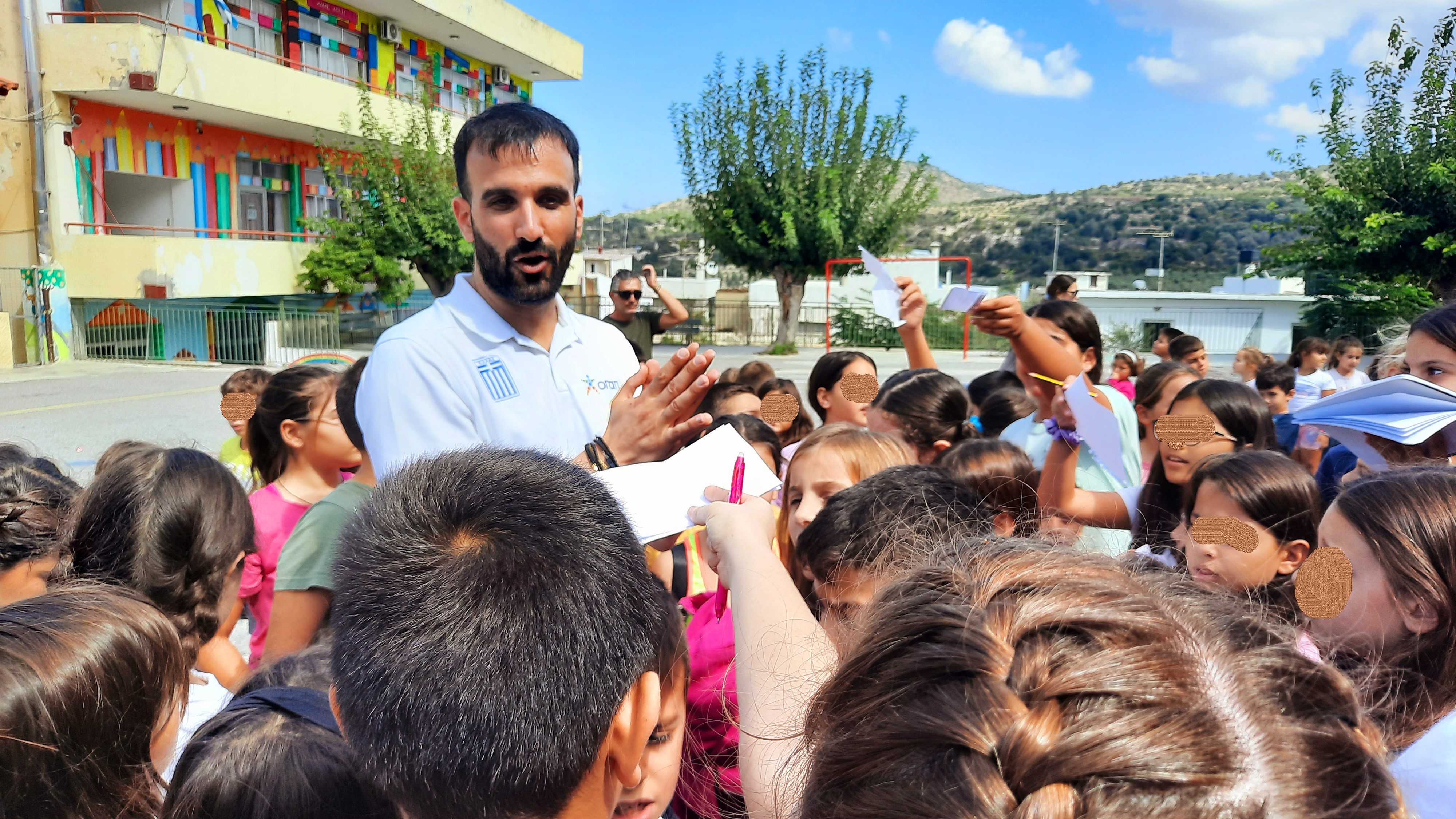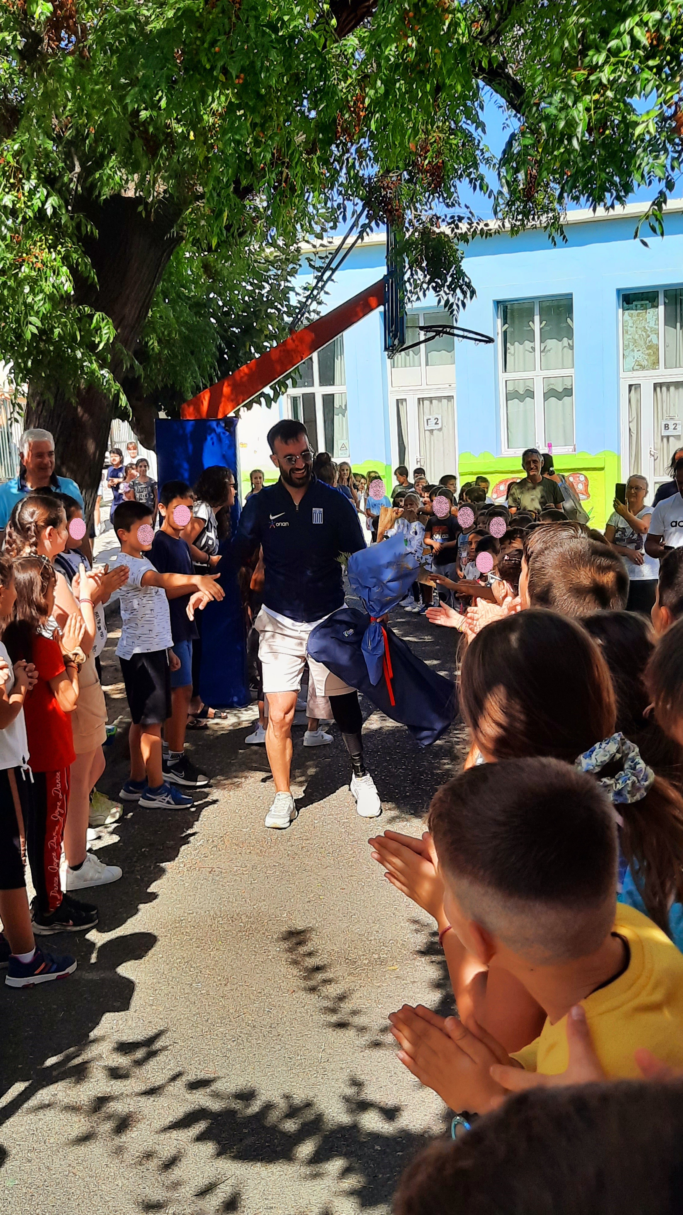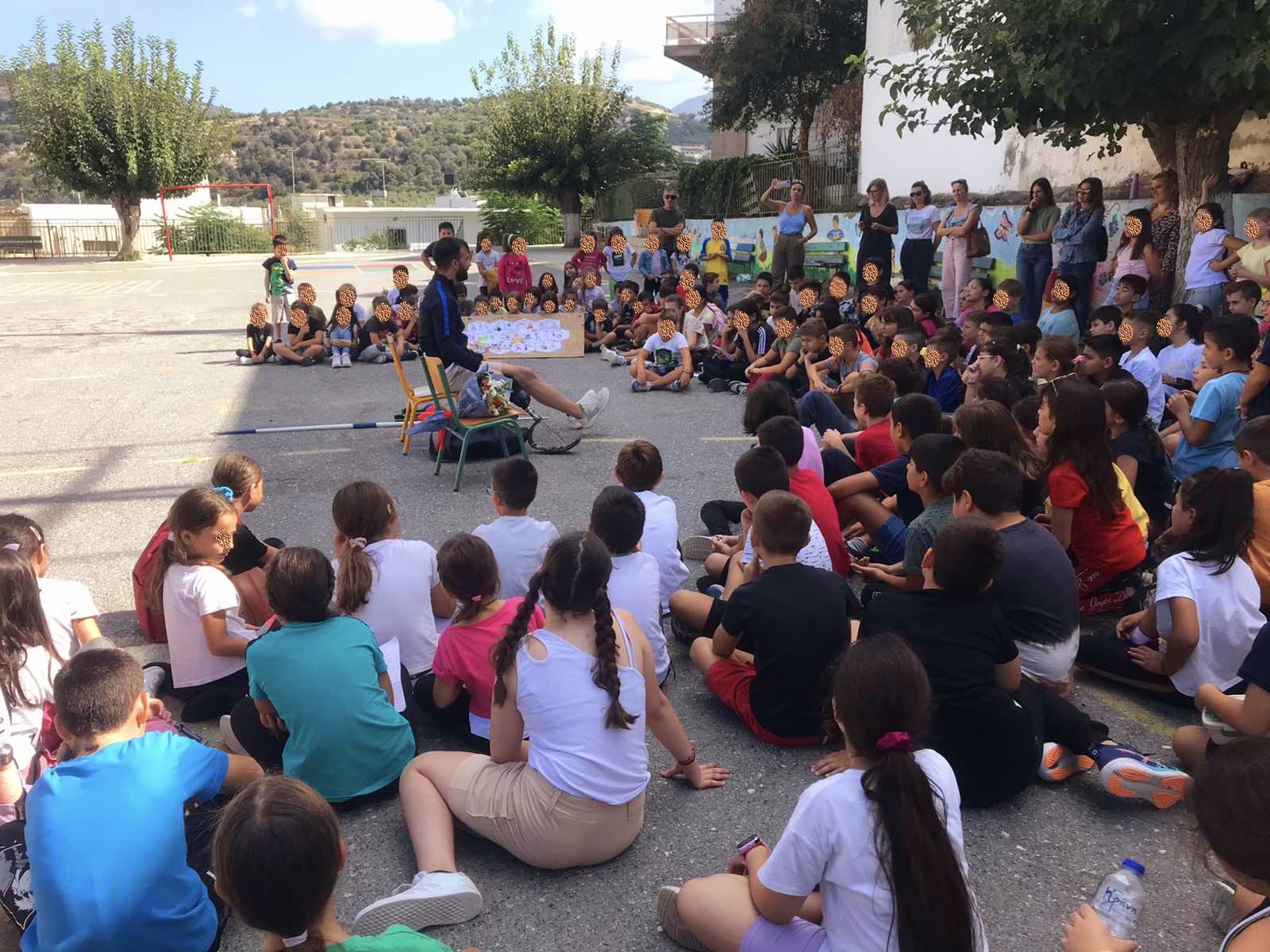 Επιπρόσθετα, στα πλαίσια της διοργάνωσης και της συμπεριληπτικής εκπαίδευσης, οι μαθητές είχαν την ευκαιρία να συνομιλήσουν με τον διακεκριμένο αθλητή ΑμεΑ κ Μανώλη Γιακουμάκη, μετά από πρόσκληση του συλλόγου διδασκόντων του σχολείου, τον οποίο υποδέχτηκαν με εγκάρδιο καλωσόρισμα. Ο χρυσός πρωταθλητής στο ακόντιο έγινε αποδέκτης πλήθους ερωτήσεων από τους μαθητές, τις οποίες απάντησε με μεγάλη προθυμία, μεταφέροντας στα παιδιά τις εμπειρίες από την πορεία του στον αθλητισμό και τη συμμετοχή του στο παραολυμπιακό κίνημα. Στην συνέχεια, στον αύλειο χώρο του σχολείου πραγματοποιήθηκε επίδειξη από τον κ Μανώλη Γιακουμάκη του αθλήματος του ακοντισμού καθώς επίσης και ένα εσωτερικό πρωτάθλημα ακοντισμού όπου ενθουσίασε τους μικρούς μαθητές του σχολείου.