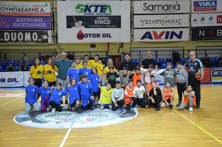 Παράλληλα, στην ανάπαυλα του τελικού αγώνα, πραγματοποιήθηκε ο διαγωνισμός ελεύθερων βολών, όπου αναμετρήθηκαν επίλεκτοι από τα σχολεία που έφτασαν στην 8αδα της διοργάνωσης, με τον Γιώργο Παπουτσάκη (2ο Δημοτικό Σχ. Ρεθύμνου) να αποδεικνύεται πιο εύστοχος όλων. Μετά το πέρας της αγωνιστικής «δράσης» των μικρών μαθητών, ακολούθησαν οι βραβεύσεις όλων των σχολείων, των μαθητών και των εθελοντών του προγράμματος Cretan Kings Assist.