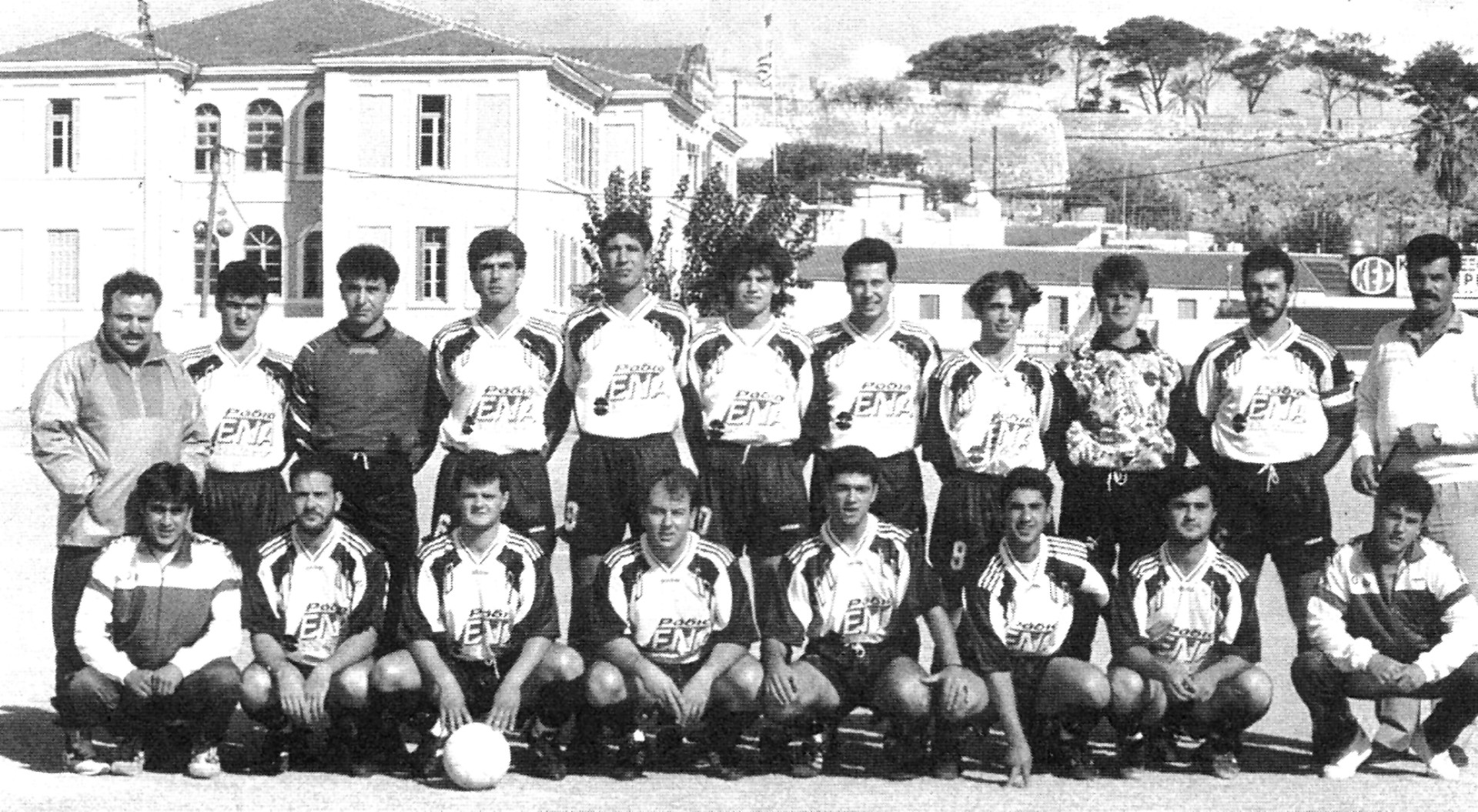 Όρθιοι: Παν. Γκαλονομάκης (παίκτης-προπονητής), Στ. Γιακουμάκης, Π. Μουρτζανός, Α. Μουρτζανός, Ι. Πιπεράκης, Γ. Χανιωτάκης, Ι. Ριζικιανός, Κ. Χριστοδουλάκης, Κ. Μανουσάκης, Μ. Χαλκιαδάκης