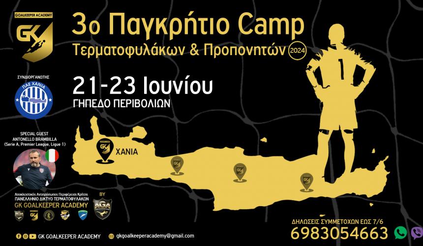 Τα Χανιά και το γήπεδο των Περιβολίων θα αποτελέσουν τον 4ο και τελευταίο σταθμό του ‘‘3ου Παγκρήτιου Camp Τερματοφυλάκων και Προπονητών’’, που διοργανώνει η GK Goalkeeper Academy, το τριήμερο 21-23 Ιουνίου. Συνδιοργανώτρια του Camp θα είναι η μεγαλύτερη ομάδα του Νομού, η ΠΑΕ Χανιά.