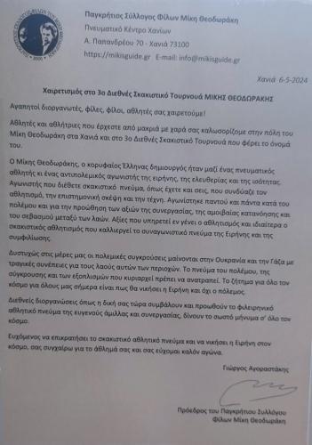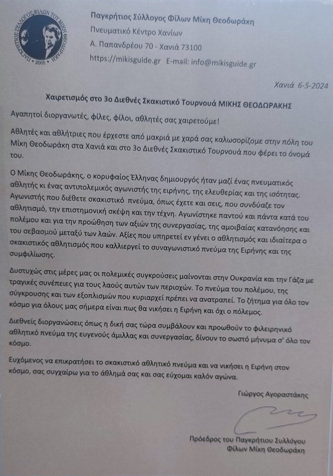 Το πρωτάθλημα διοργανώθηκε για 3η χρονιά στα Χανιά προς τιμή του Κρητικής & Μικρασιατικής καταγωγής μουσικοσυνθέτη, Μίκη Θεοδωράκη.