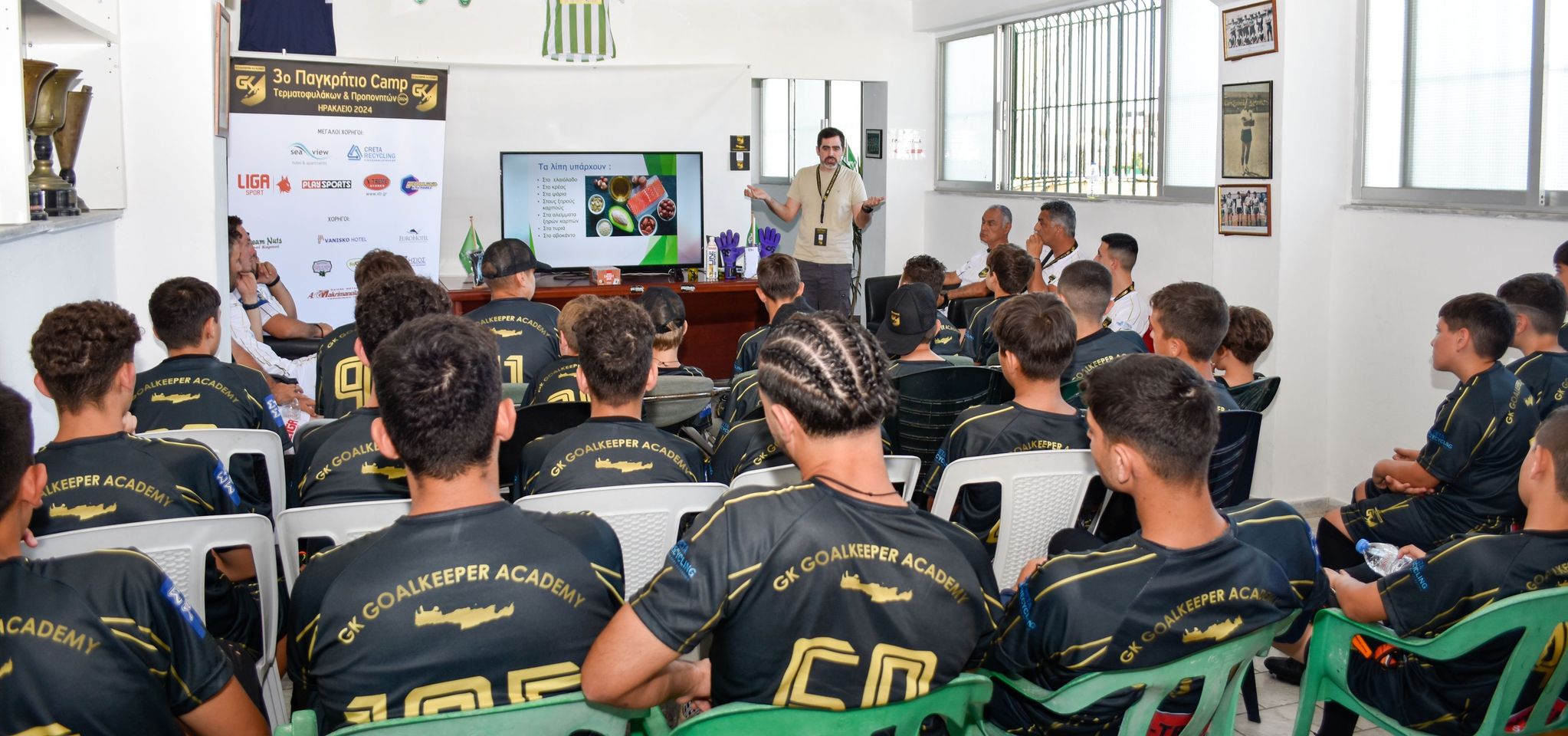 Στη συνέχεια, τον λόγο πήρε ο Επικεφαλής της GK Goalkeeper Academy, Κώστας Γύπαρης, ο οποίος διεξήγαγε σεμινάριο με στόχο τη διδασκαλία/εκπαίδευση τεχνικών του τερματοφύλακα.