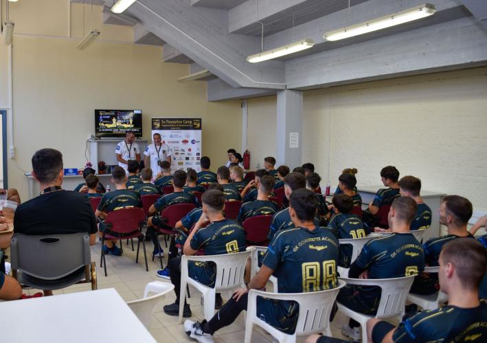 Η πρώτη μέρα ολοκληρώθηκε με πρόγραμμα προπόνησης και αξιολόγησης από τον κ. Μπραμπίλα, το οποίο περιελάμβανε grip and dive, movement, positioning, shot stopping και 1vs1