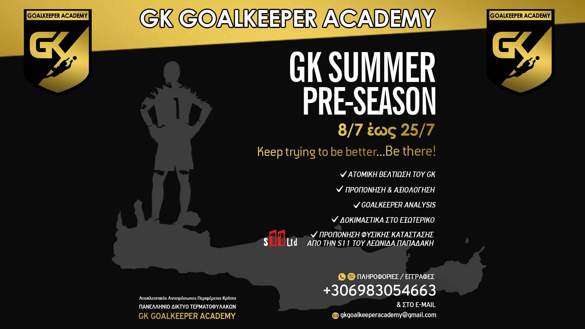 Η GK Summer Pre Season έρχεται για ένα ακόμη καλοκαίρι προσφέροντας την ευκαιρία σε όλους τους goalkeepers του Νομού Χανίων και όχι μόνο να εξελιχθούν και να προετοιμαστούν για την ποδοσφαιρική σεζόν 2024-25!