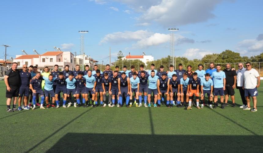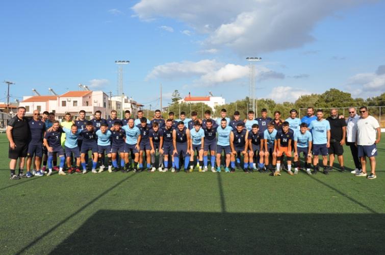 Οι δύο αδελφοποιημένες ομάδες που θα πορευτούν σε σάρκα μία… συνεβρέθηκαν στο πρώτο φιλικό στο πλαίσιο της προετοιμασίας τους και ενόψει της νέας ποδοσφαιρικής χρονιάς, πήραν τις γεναιόδωρες ευχές του πατήρ Μιχαήλ Μυστράκη, ο οποίος τέλεσε το μυστήριο του Αγιασμού. Παρούσες στο γήπεδο οι διοικήσεις των δύο ομάδων, προεξερχόντων των προέδρων τους κ.κ. Νίκο Παπαδάκη και Δημήτρη Δομαζάκη, ανταλλάσοντας ευχές για καλή ποδοσφαιρική σεζόν με υγεία χωρίς τραυματισμούς.