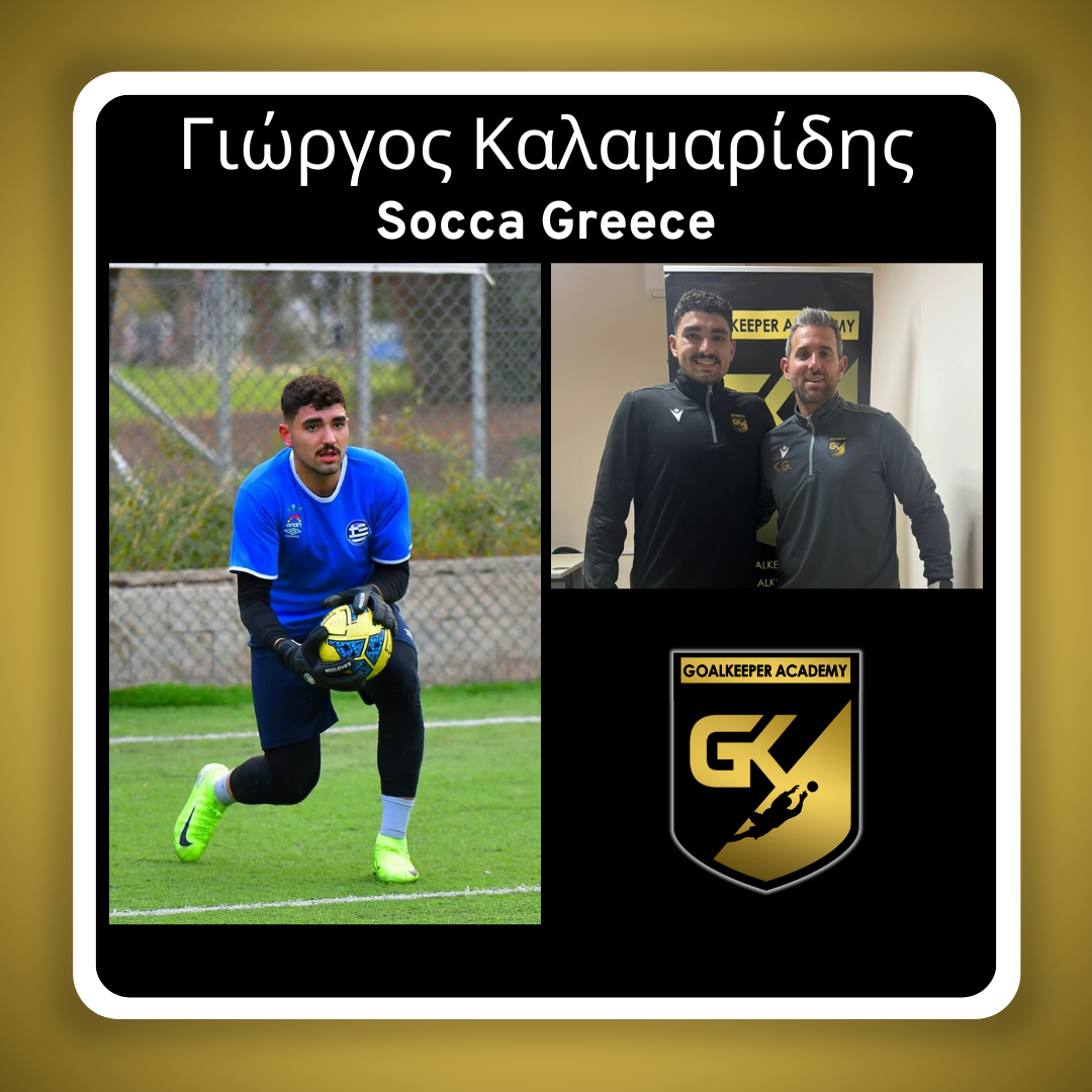 Η GK Goalkeeper Academy είναι περήφανη καθώς ο αθλητής της, Γιώργος Καλαμαρίδης, θα συμμετέχει με το αντιπροσωπευτικό συγκρότημα της Ελλάδας στο Παγκόσμιο Πρωτάθλημα Mini Socca. Αυτή η σημαντική διάκριση έρχεται ως αποτέλεσμα της σκληρής δουλειάς, της αφοσίωσης και του ταλέντου του Γιώργου.