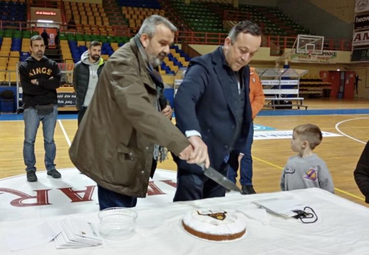 Μάλιστα, η καθιερωμένη κοπή της πίτας πραγματοποιήθηκε μετά το τέλος της αναμέτρησης, όπου το «παρών» έδωσε ο Αντιδήμαρχος Αθλητισμού, Νίκος Προβιάς, ο πρόεδρος του σωματείου Γιάννης, Καλαϊτζάκης, οι προπονητές, οι παίκτες της ανδρικής ομάδας και της ακαδημίας, αλλά και οι γονείς.