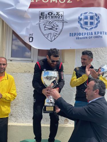 «Ο Δημήτρης Καραμπίνας ήταν εδώ μαζί μου και έχει μεγάλο μερίδιο στην επιτυχία, όπως επίσης και ο Τάσος Κουνούπης. Τους ευχαριστώ πολύ και συνεχίζουμε με στόχο την επόμενη προπόνηση και την επόμενη αγωνιστική πρόκληση, στις 4 Μαΐου στο Ελαφονήσι».