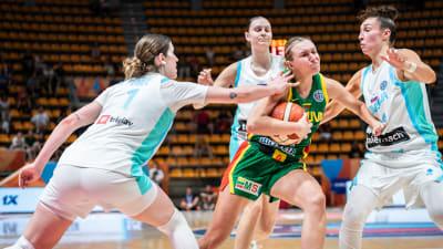 Η Σλοβενία, με ομοσπονδιακό τεχνικό, τον δικό μας Τζώρτζη Δικαιουλάκο, στοχεύει για μεγάλα πράγματα στην εν λόγο διοργάνωση, παρ΄ όλα, αυτά, στην πρεμιέρα της κόντρα στην Λιθουανία δεν απέδειξε κάτι τέτοιο. Η Λιθουανία – από το πρώτο λεπτό – ήλεγχε τα ηνία, της αναμέτρησης και πήγε προηγούμενη στα αποδυτήρια, με την διαφορά στο +8 (34 – 42). Στο β΄ μέρος, η Λιθουανία άντεξε στην πίεση που άσκησε η Σλοβενία και κατάφερε να προηγείτο και στο τέλος, της τρίτης περιόδου (55 – 58). Η κατάσταση άλλαξε, κάπως, στην τέταρτη και τελευταία περίοδο, του παιχνιδιού, καθώς, η Σλοβενία πάλεψε με όλες της, τις δυνάμεις, προκειμένου να πετύχει την μεγάλη ανατροπή. Η ανεπανάληπτη εμφάνιση της Jessica Shepard (25 πόντους & 17 ριμπάουντ) δε έφτανε και, έτσι, η χώρα της Βαλτικής πήρε ένα «τεράστιο» αποτέλεσμα (71 – 77), για την οικονομία και την εξέλιξη, του Β΄ ομίλου, του Πανευρωπαϊκού Πρωταθλήματος Καλαθοσφαίρισης Γυναικών 2025 - FIBA Women’s EuroBasket 2025.