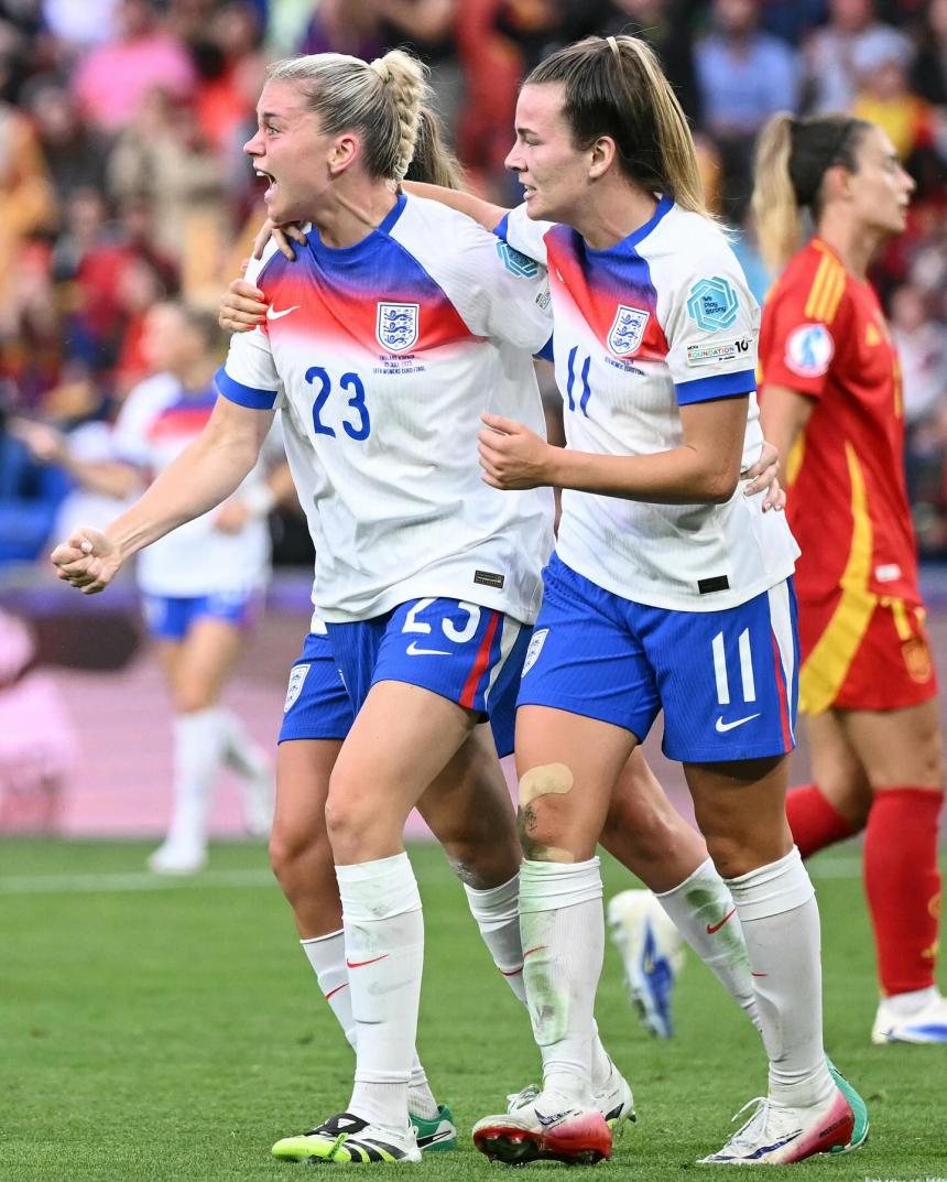 Η αντίδραση, όμως, από την πλευρά των αθλητριών, της Αγγλίας, δε άργησε να έρθει - σε άλλο ένα παιχνίδι της εν λόγο διοργάνωσης - αναδεικνύοντας περίτρανα τον ψυχισμό, την δυναμική και την ιδιαίτερη μαχητικότητα, της Πρωταθλήτριας Ευρώπης. Στο β΄ ημίχρονο, η Αγγλία άσκησε υψηλή πίεση στην καλά οργανωμένη άμυνα, της Ισπανίας, δημιουργώντας σημαντικές ευκαιρίες ισοφάρισης. Τελικώς, το πολυπόθητο γκολ ήρθε στο 57΄ λεπτό της αναμέτρησης, με σκόρερ την Alessia Russo, έπειτα, από εξαιρετική ενέργεια της Chloe Kelly. Από την στιγμή, της ισοφάρισης, μέχρι και το τέλος, της κανονικής διάρκειας, το παιχνίδι και των δύο ομάδων υπήρξε συντηρητικό, με στόχο να αποτρέψουν, κατά κύριο λόγο, την παραβίαση των εστιών τους. Κάπως, έτσι, το τέλος, της κανονικής διάρκειας, βρήκε τις δύο ομάδες ισόπαλες (1-1) και το παιχνίδι οδηγήθηκε στο έξτρα τριαντάλεπτο, στην διαδικασία της παράτασης, δηλαδή.