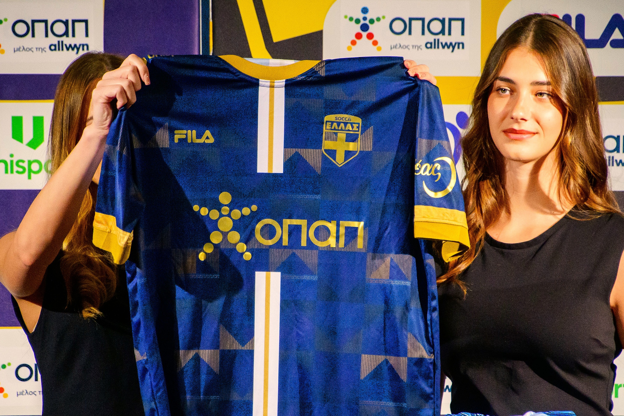 Η γαλάζια εμφάνιση διαθέτει λευκό σταυρό και μοτίβα εμπνευσμένα από το ελληνικό θαλάσσιο στοιχείο.