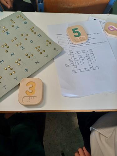 Με το πέρας των δραστηριοτήτων, οι μαθητές συμπλήρωσαν φύλλα εργασίας, καταγράφοντας τα συναισθήματά τους, τις δυσκολίες που αντιμετώπισαν και τις εντυπώσεις τους. Επίσης, έλυσαν ακροστιχίδα σε απτικό σύστημα γραφής και ανάγνωσης Braille, ενισχύοντας την κατανόηση του κώδικα και βιώνοντας τη διαδικασία μάθησης των ατόμων με οπτική αναπηρία.