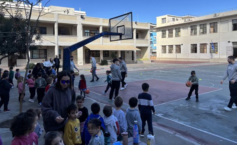 Το Ρέθυμνο Cretan Kings κοντά στους μαθητές του 1ου Νηπιαγωγείου και του 2ου Δημοτικού Σχολείου.