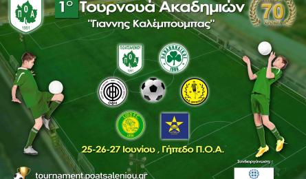 Πανελλήνιο τουρνουά ακαδημιών ποδοσφαίρου με την συνδιοργάνωση της Περιφέρειας Κρήτης Ο Παναθλητικός Όμιλος Ατσαλένιου διοργανώνει πανελλήνιο τουρνουά ακαδημιών ποδοσφαίρου για τον εορτασμό των 70χρόνων από την ίδρυση του... 22.06.2021 11:57