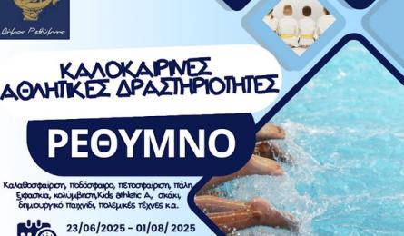 Αθλητική πανδαισία στο 1ο καλοκαιρινό καμπ του Δήμου Ρεθύμνης για τα παιδιά του Δημοτικού Σε μια ελκυστική μετάβαση από τα θρανία στα γήπεδα προσκαλεί ο Δήμος Ρεθύμνης τα παιδιά του Δημοτικού Σχολείου που θα έχουν την ευκαιρία να... 06.06.2025 22:51
